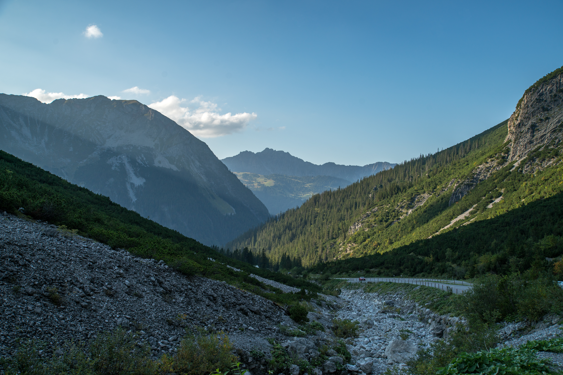 From here you can either take the Lünersee cable car and the bus back to Brand or descend via the Bösen Tritt to the valley station of the Lünersee cable car and continue on foot to Brand.