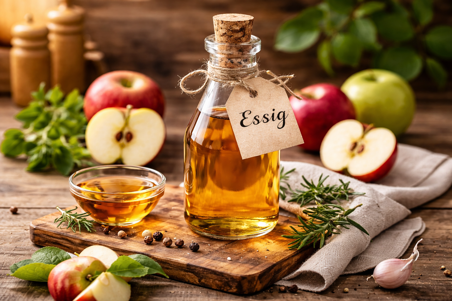 In diesem Kurs dreht sich alles um die Kunst, hochwertigen Essig selbst herzustellen – mit besonderem Fokus auf Apfelessig. Sie erfahren, wie aus Obst, Kräutern oder anderen geeigneten Zutaten ein aromatischer, natürlicher Essig entsteht und welche Schritte dabei wichtig sind.