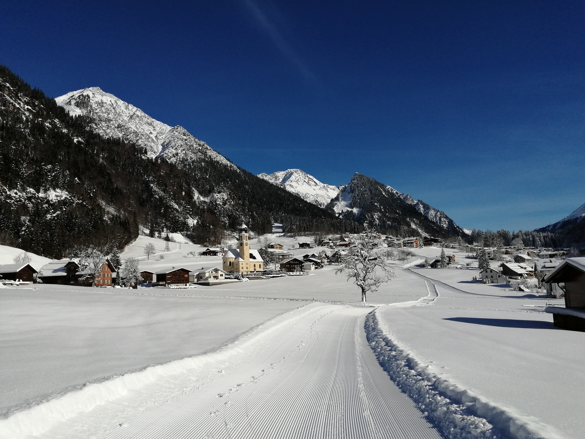 Kurzer Winterwander-Rundweg in Ortsteil Außerwald in Wald am Arlberg.