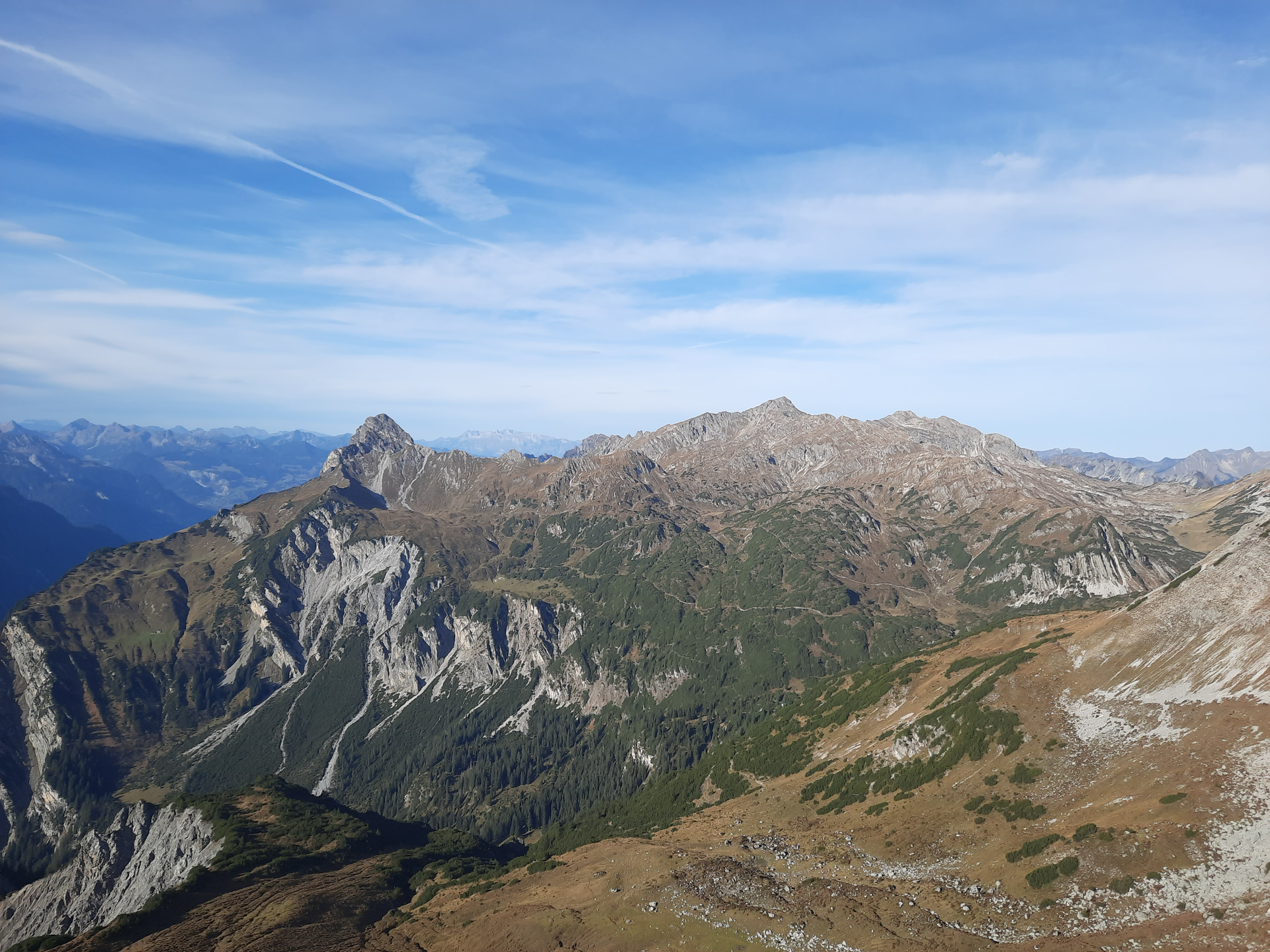 Bergtour mit sagenhaftem Rundumblick auf das Lechquellengebirge mit Fensterlewand und Roter Wand, den Verwall und weit in die Silvretta hinein.