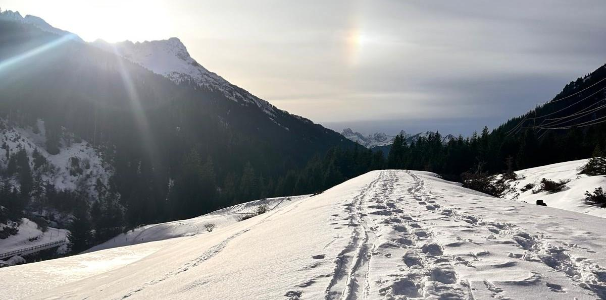 Eine Schneeschuhschnuppertour im Winter durch das Klostertal.