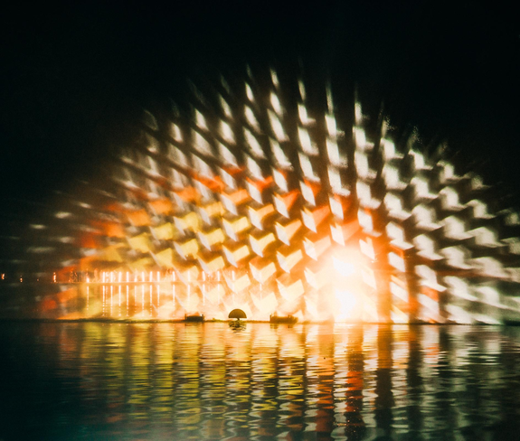 The spectators stand right in the midst of the action and experience how water, light, and sound come together. The images appear almost three-dimensional and showcase the five elements: nature, wind, energy, fire, and water. Combined through a magically interpreted journey through evolution.