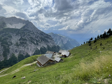 Die 3-Tages-Tour startet bei der Kirche in Buchboden. Über die Obere Ischkarneialpe geht es hinunter bis an die Schwarzegga, von wo der letzte Wegabschnitt bis zur Biberacher Hütte gut einzusehen ist. Auf der Biberacher Hütte ist der erste Übernachtungsstopp.