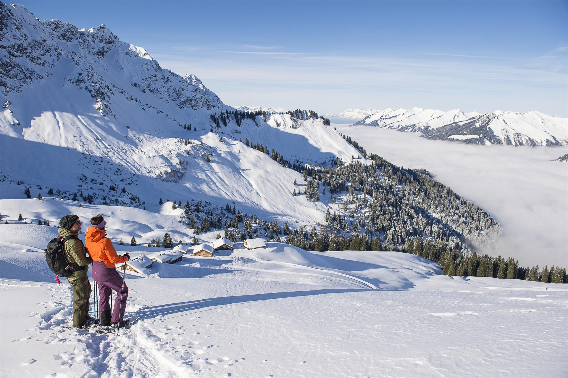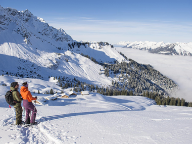 Entdecken Sie die unberührte Landschaft des Biosphärenparks Großes Walsertal und genießen Sie einen atemberaubenden Ausblick auf die umliegenden Berge. Die Winterwanderführer von BERGaktiv Großes Walsertal begleiten Sie auf Winterwanderungen sowie Schneeschuhtouren, es erwartet Sie ein abwechslungsreiches Programm.
