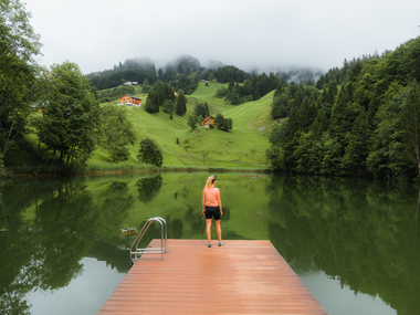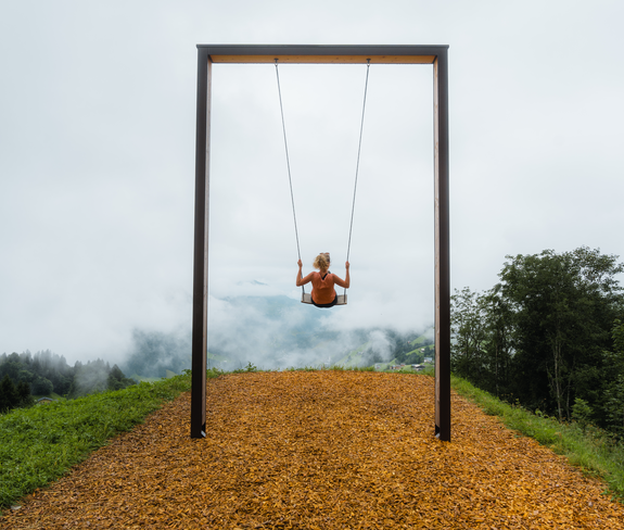 Diese Route verbindet zwei besondere Schaukelplätze im Großen Walsertal zu einer abwechslungsreichen Wanderung. Die erste Schaukel, eine sogenannte "Hutschn", befindet sich in Faschina am Hahnenköpfle, nahe der Mittelstation der Staffelalpbahn, die zu Fuß oder mit der Seilbahn erreicht werden kann. Dort kann man in luftiger Höhe eine weite Aussicht genießen. Der Weg führt weiter über die Franz-Josef-Hütte, die zu einer Pause einlädt, und vorbei am Staffelalpsee zurück nach Faschina. Von hier geht es über das Zafernmaisäß und die ruhig gelegene Bärenalpe hinunter zum Seewaldsee. Oberhalb des Sees wartet die zweite Hutschn - ein Ort zum Innehalten und um den Blick ins Tal schweifen zu lassen. Dazwischen wechseln sich stille Wälder, weite Alpwiesen und Panoramaausblicke ab. Die Wanderung bietet Raum für entspannte Pausen ebenso wie für sportliche Ambitionen und verbindet Bewegung mit besonderen Momenten hoch über dem Walsertal. Nach der Wanderung kannst Du entweder mit dem Bus von Fontanella-Säge zum Faschinajoch retour fahren oder dem Wanderweg folgen.